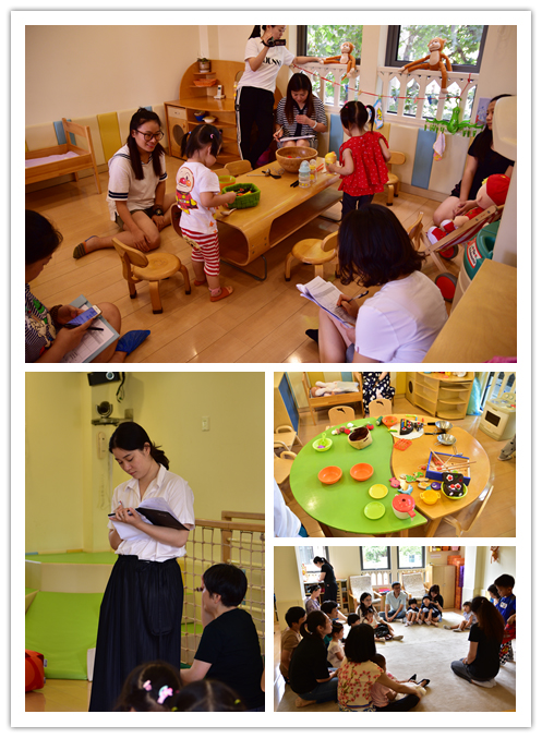 6月27日的第一場實(shí)訓(xùn)教學(xué)中,要求學(xué)員進(jìn)入真實(shí)的教學(xué)環(huán)境中,根據(jù)專業(yè)理論進(jìn)行觀察。在觀察結(jié)束后,分組進(jìn)行集體教研,完成《觀察記錄表》和《個(gè)人評估反思表》,并制訂活動方案。